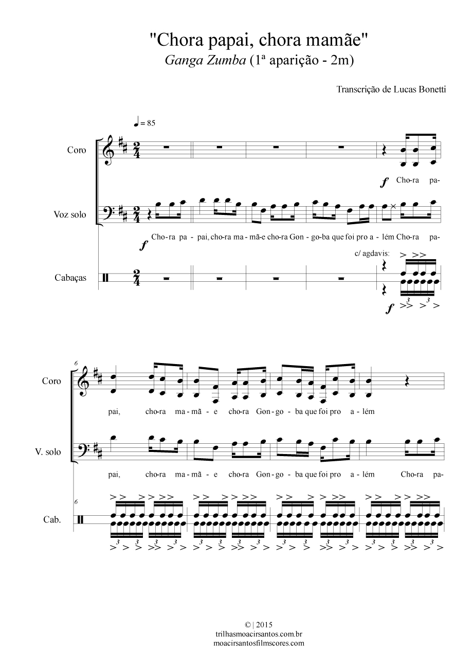 Diversas notas soam desafinadas, por conta da interpretação. Optamos por não notar os pontos divergentes específicos e apenas escrever a melodia como ela é sugerida.