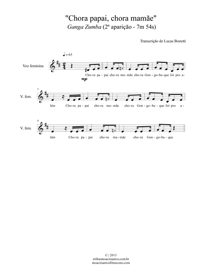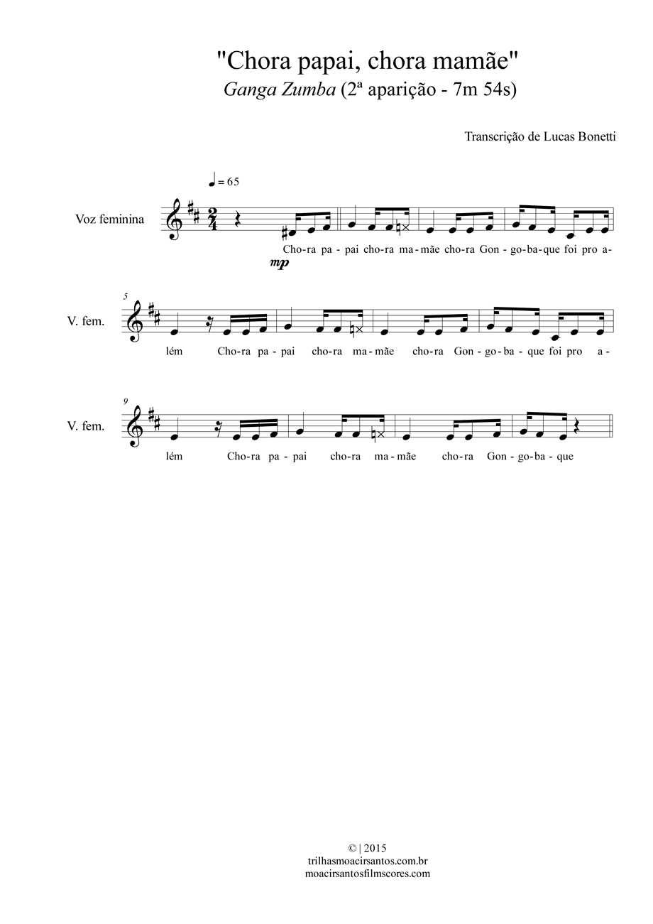 Diversas notas soam desafinadas, por conta da interpretação. Optamos por não notar os pontos divergentes específicos e apenas escrever a melodia como ela é sugerida.