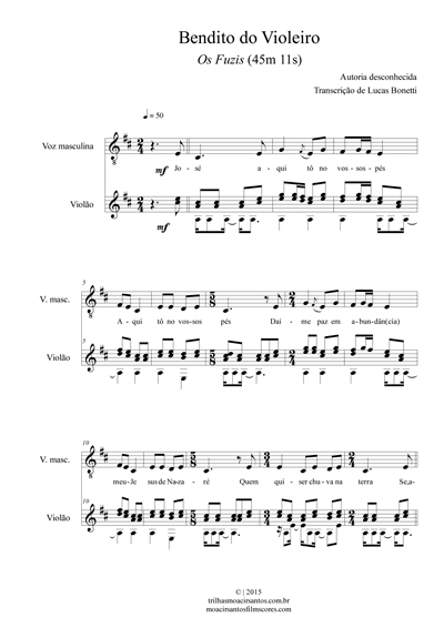 Deve-se considerar toda a transcrição como uma aproximação, pois a execução tem um caráter muito peculiar, quase folclórico, que não pode ser plenamente notado em partitura.