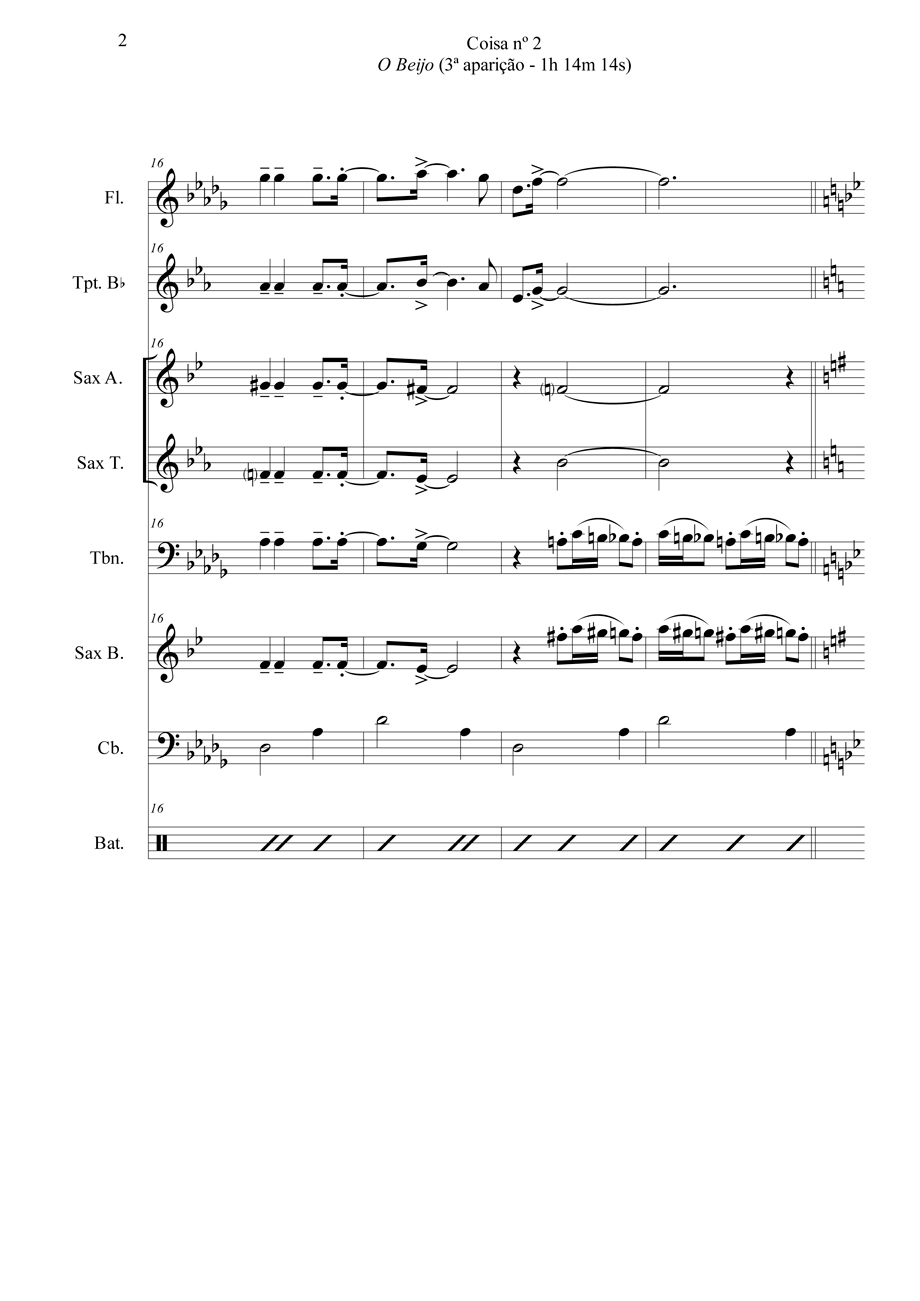Although the drums solo was written in the same manner of the 2ª aparição, what we listen to in the 3ª is as eight measure solo, the woodwind and brass anacrusis occur in the measures nine and ten. However, it is possible to notice that there are some sound editions in the montages.