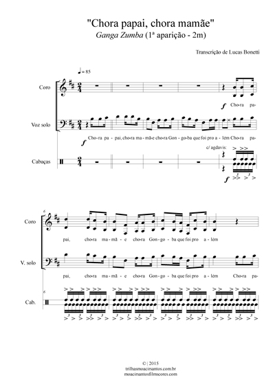 Diversas notas soam desafinadas, por conta da interpretação. Optamos por não notar os pontos divergentes específicos e apenas escrever a melodia como ela é sugerida.