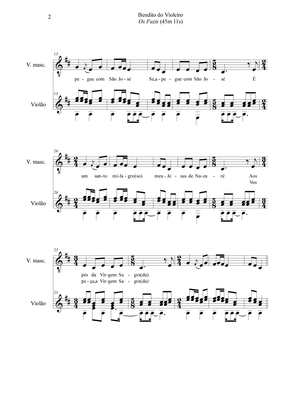 A transcrição poderia ter sido notada sem nenhuma barra de compasso ou fórmula de compasso, de maneira mais livre, mas se optou pela notação mesurada para facilitar a leitura.